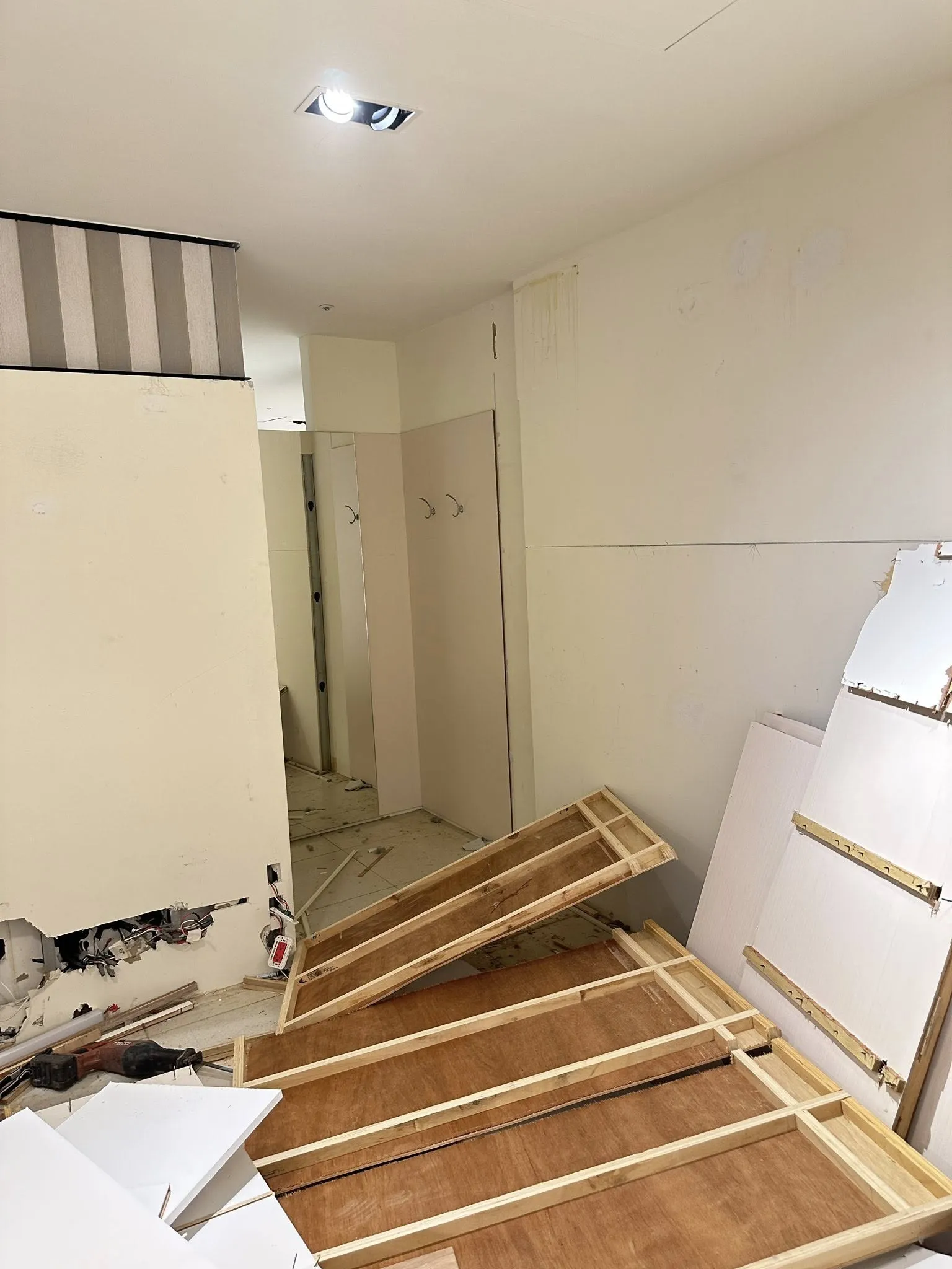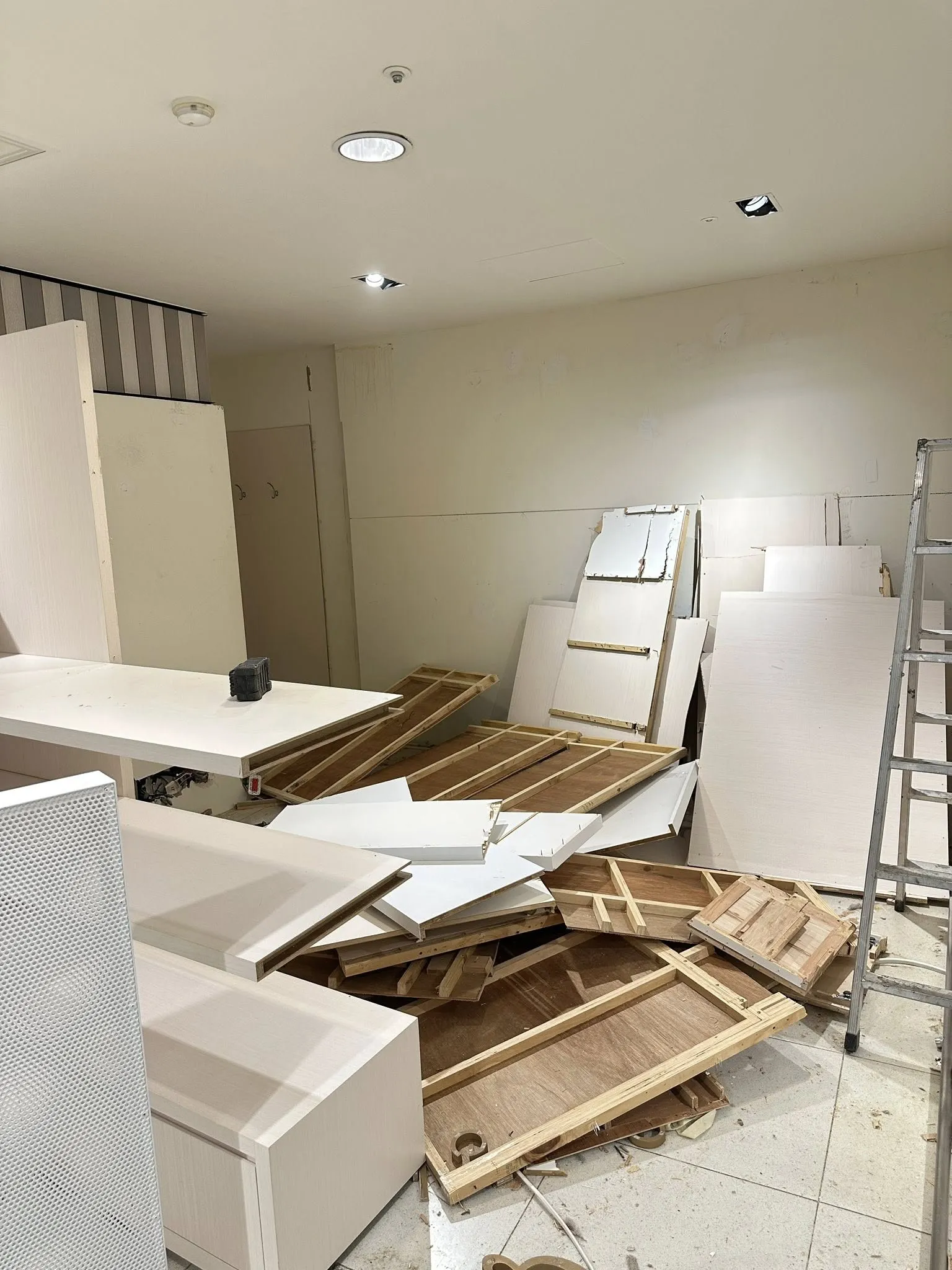 新竹 隔間櫃體 全拆除 地板切割 打水溝